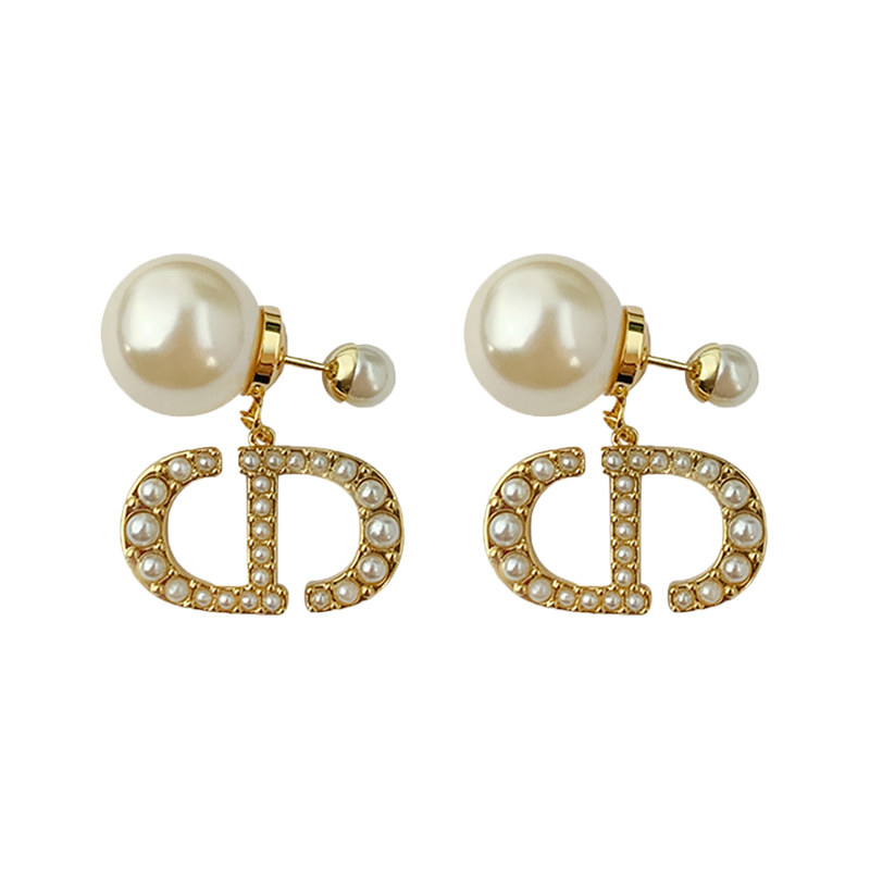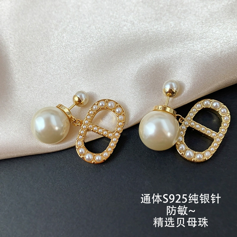 耳环 小众设计高级明星同款 奥米迪奥大字母前后款 珍珠耳钉网红爆款
