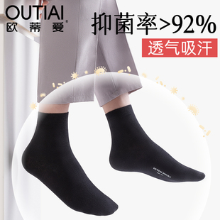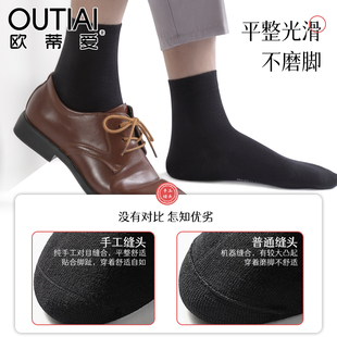 欧蒂爱袜子男纯棉防臭吸汗春夏季 中筒黑色秋冬100%全棉长筒袜 薄款