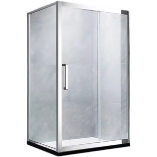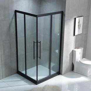 定制不锈钢L直角玻璃浴屏卫生间干湿分离隔断简易推拉移门淋浴房