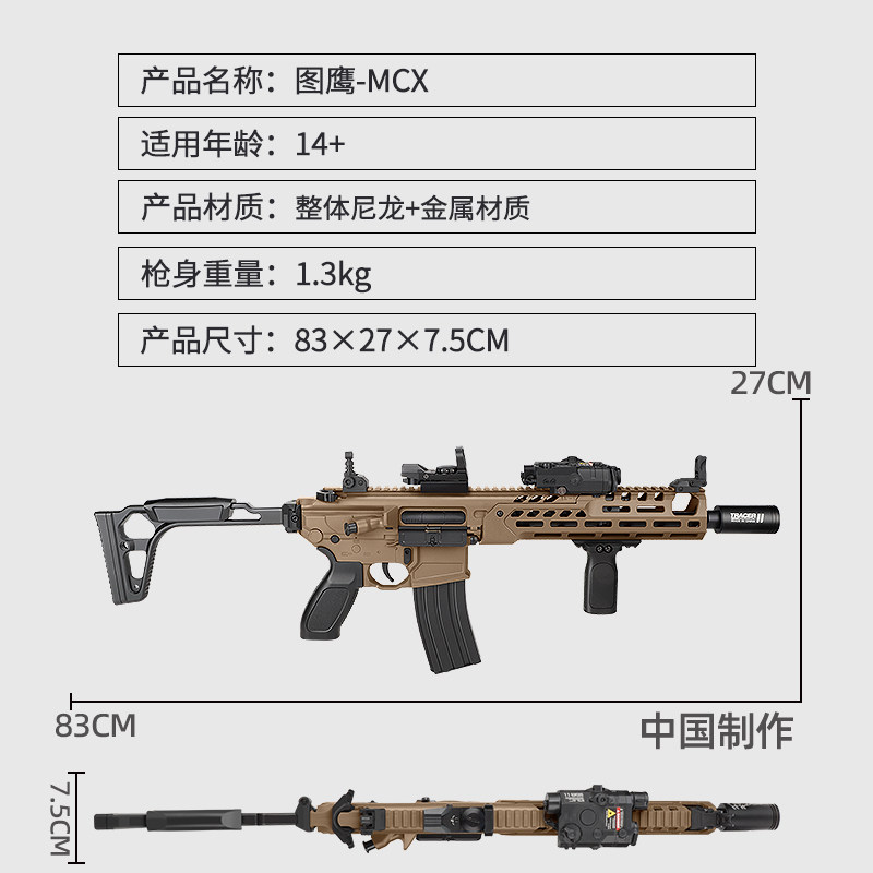 图鹰MCX金齿电动单连发尼龙玩具枪 男冲锋吃鸡狙击枪cs模型发射器