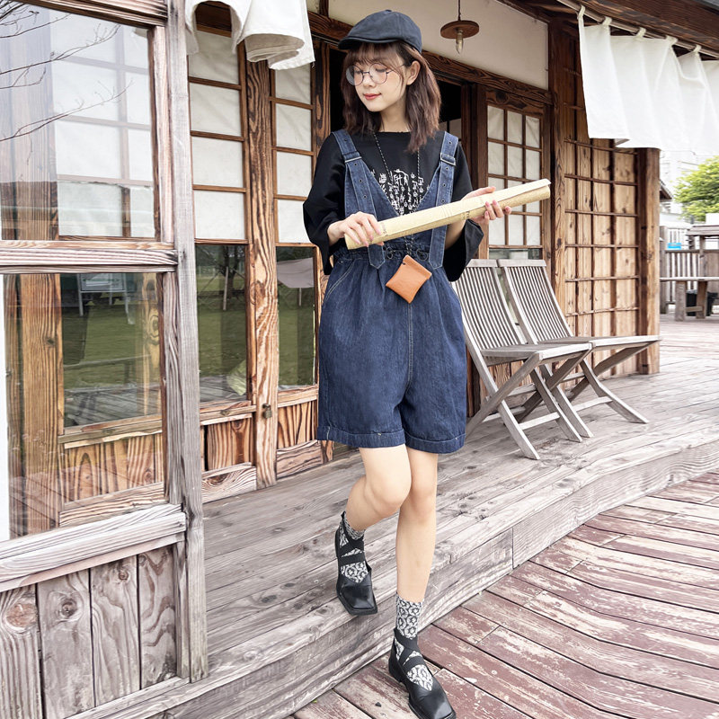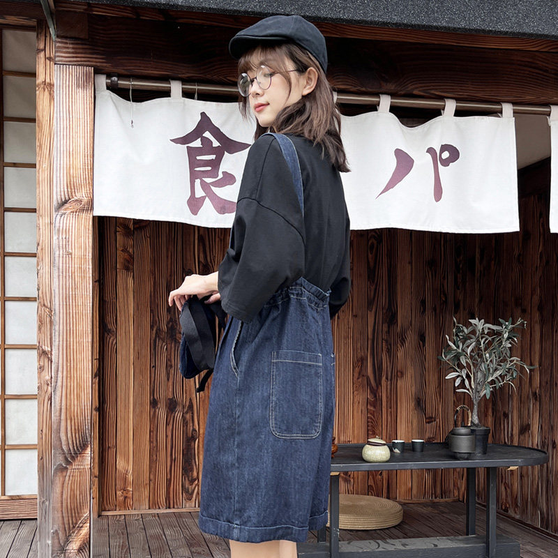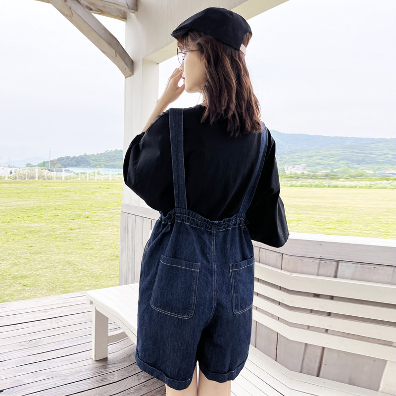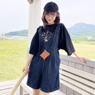 背带裤 夏季 宽松收腰显瘦减龄小个子女夏短款 牛仔背带短裤 清仓促销