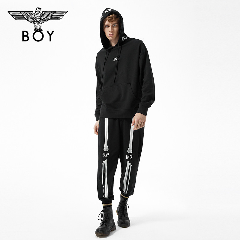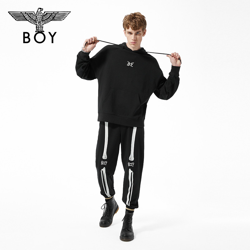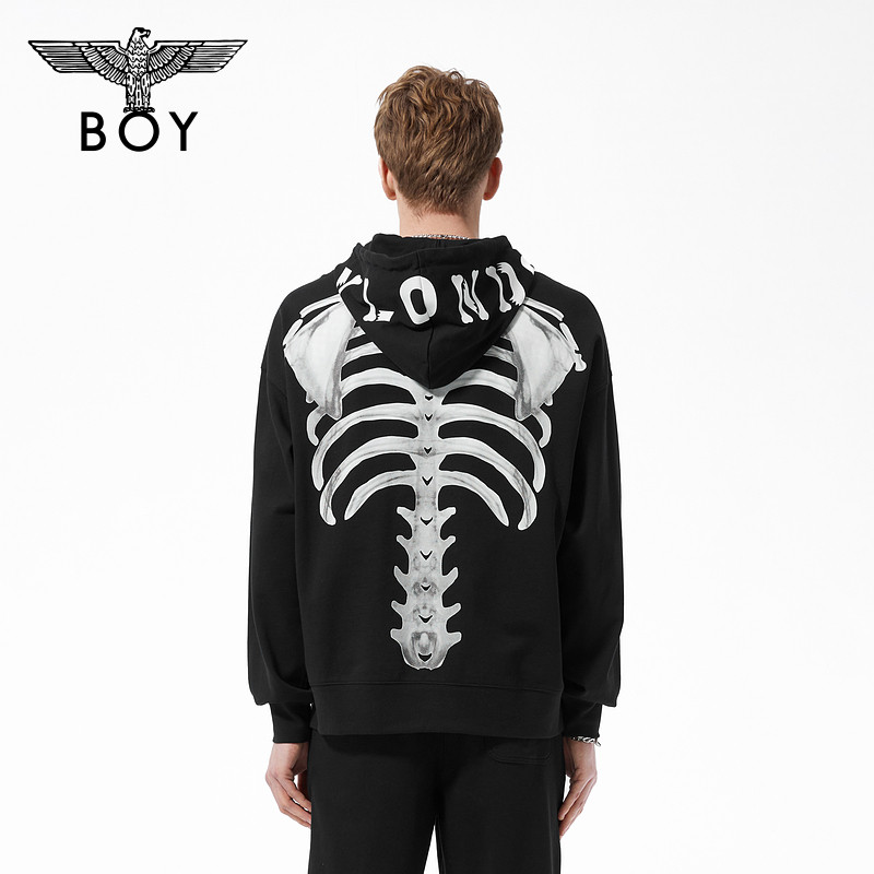 BOYLONDON潮牌套头衫 夜光骷髅印花高街连帽卫衣N04015 男女同款