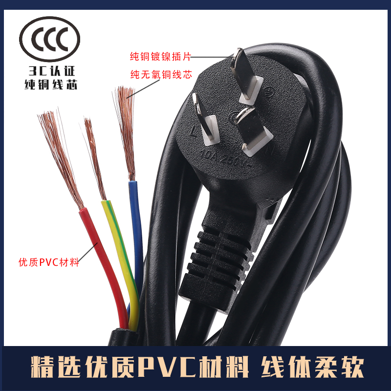 国标电源线10A 16A大功率三插头三孔三芯连接线纯铜3芯插头带线