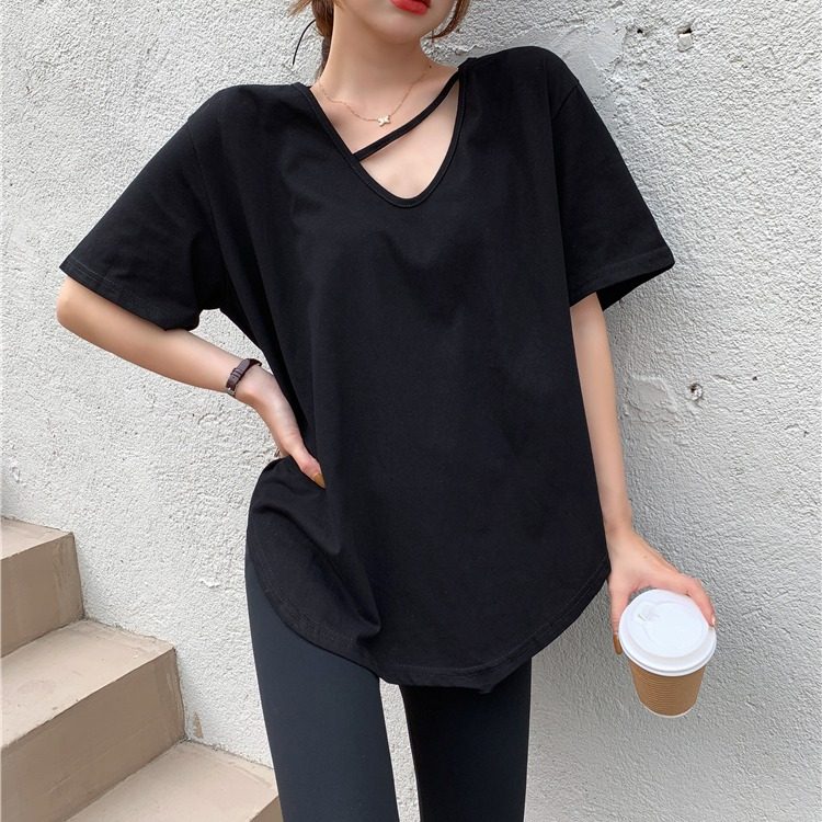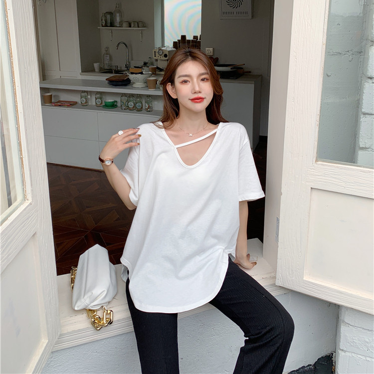 设计感小众学生韩版 胖mm短袖 女装 宽松别致甜辣v领上衣 300斤大码