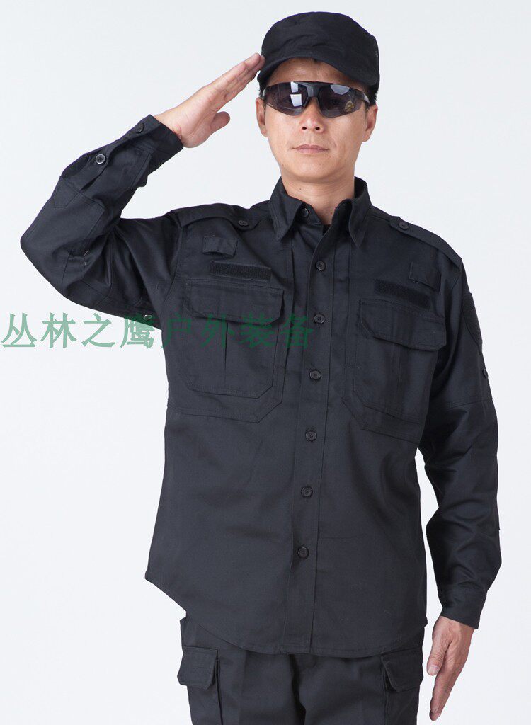 制服衬衫 511保安作训服上衣工作服短袖 长袖 男黑色春秋季 衬衣 夏装