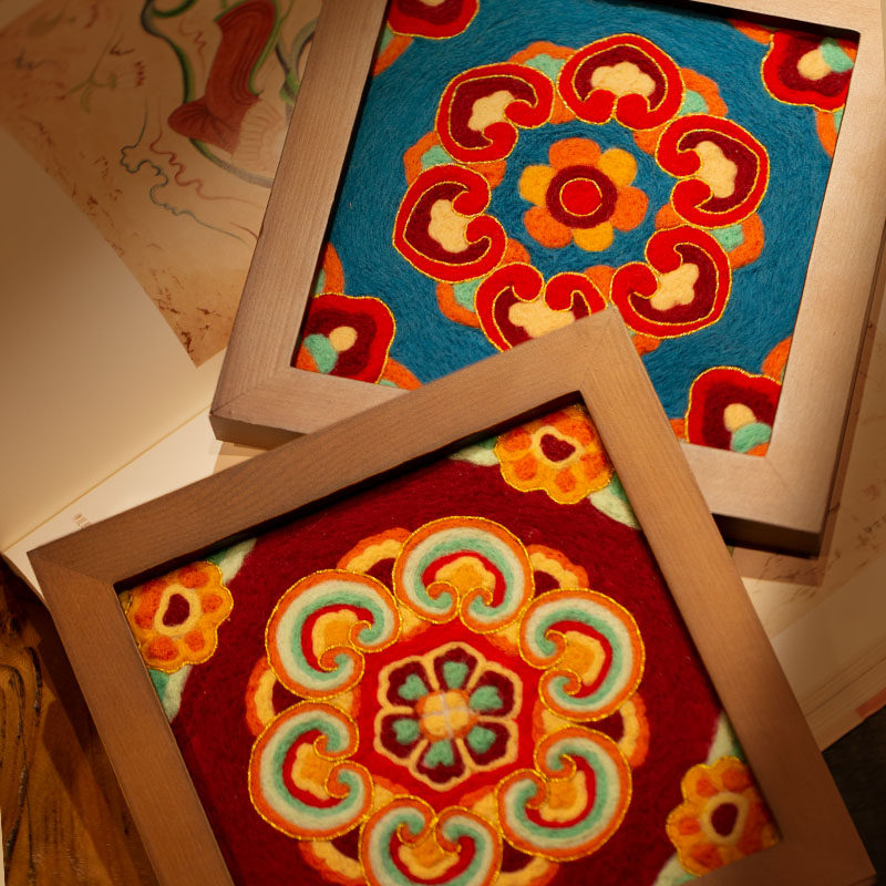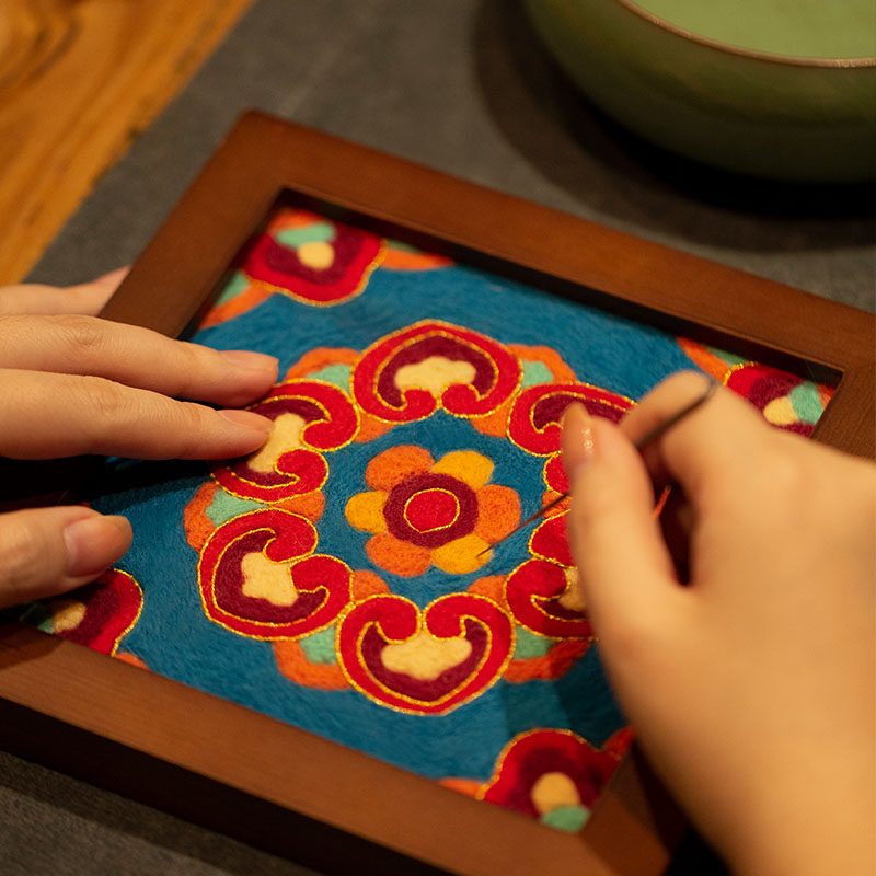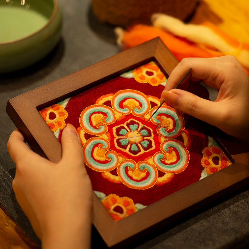 放羊班羊毛毡戳戳乐diy材料包敦煌藻井相框画装 饰手作新年花礼物