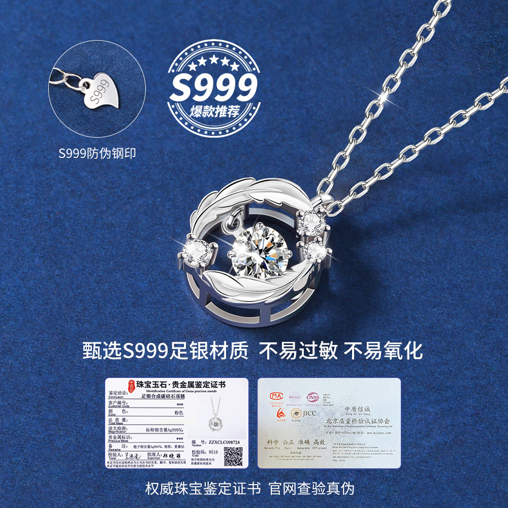 跳动 礼物送女友 心999纯银项链莫桑石钻轻奢小众高级感2025新款
