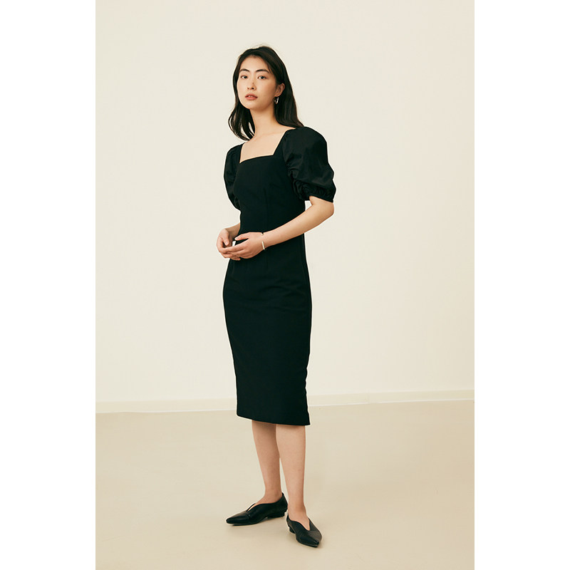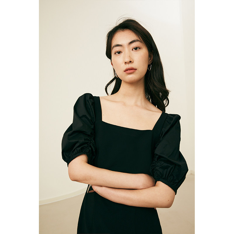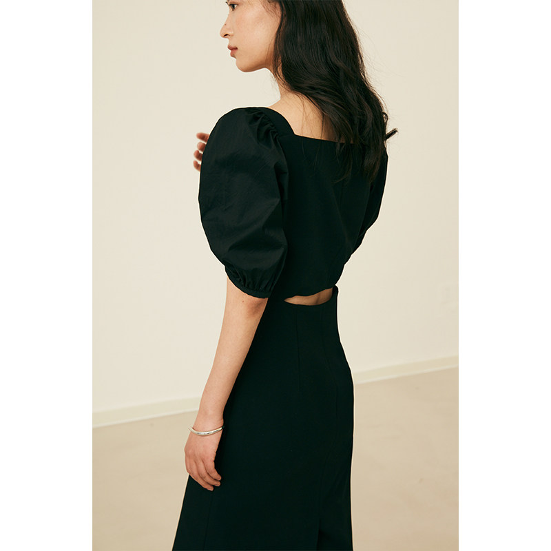 方领宫廷感小黑裙优雅泡泡 复古连衣裙女夏季 4.17秒杀 HeyDress法式
