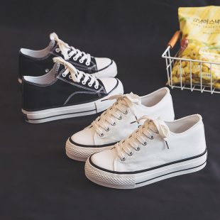 潮流休闲板鞋 厚底内增高帆布鞋 ins韩版 2023新款 女学生百搭小白鞋