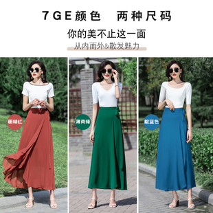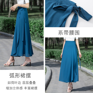 夏天薄款 裹裙半身裙女新款 雪纺裹身长裙 裙子女士系带一片式 围裹式