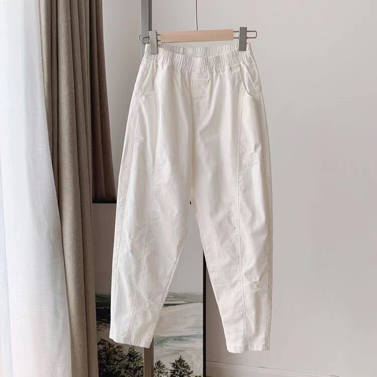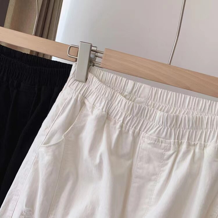 港风阔腿哈伦裤 特大码 宽松直筒裤 子男女夏季 300斤纯色破洞休闲裤