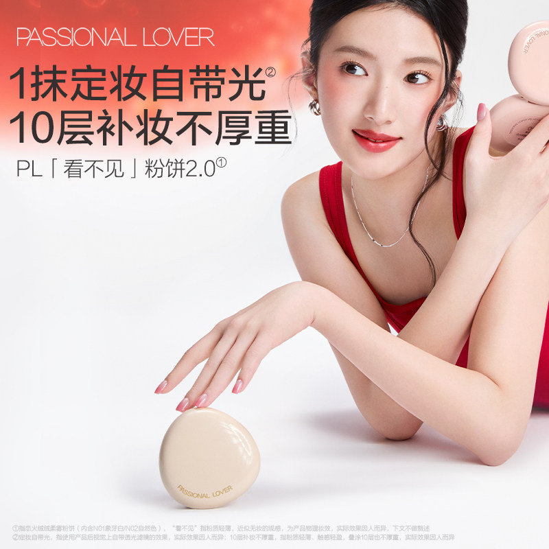 PL看不见粉饼2.0干皮 蹭不掉油皮控油定妆轻薄细腻不卡粉遮瑕磨皮