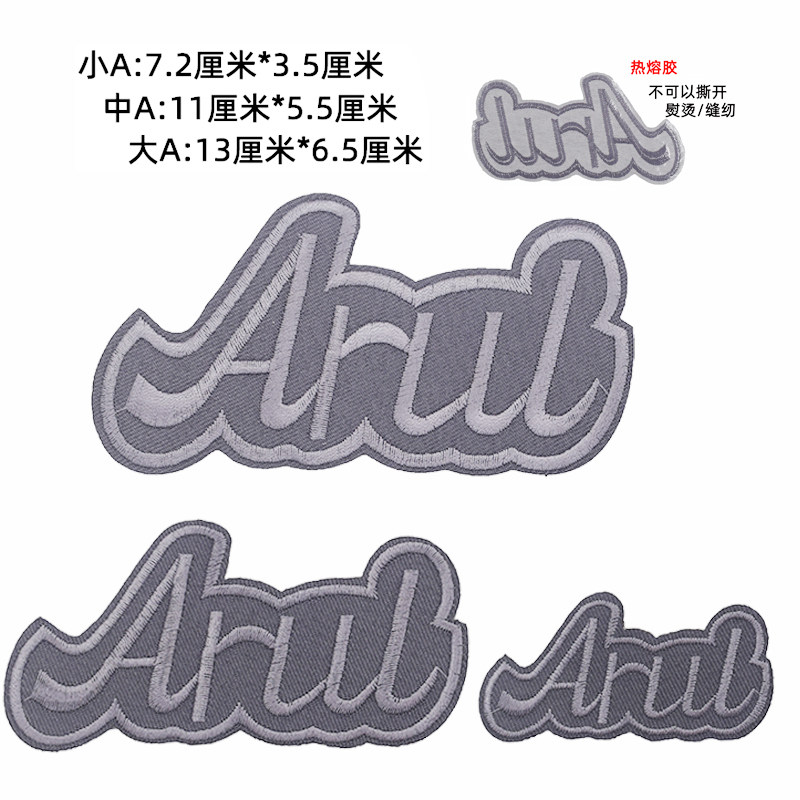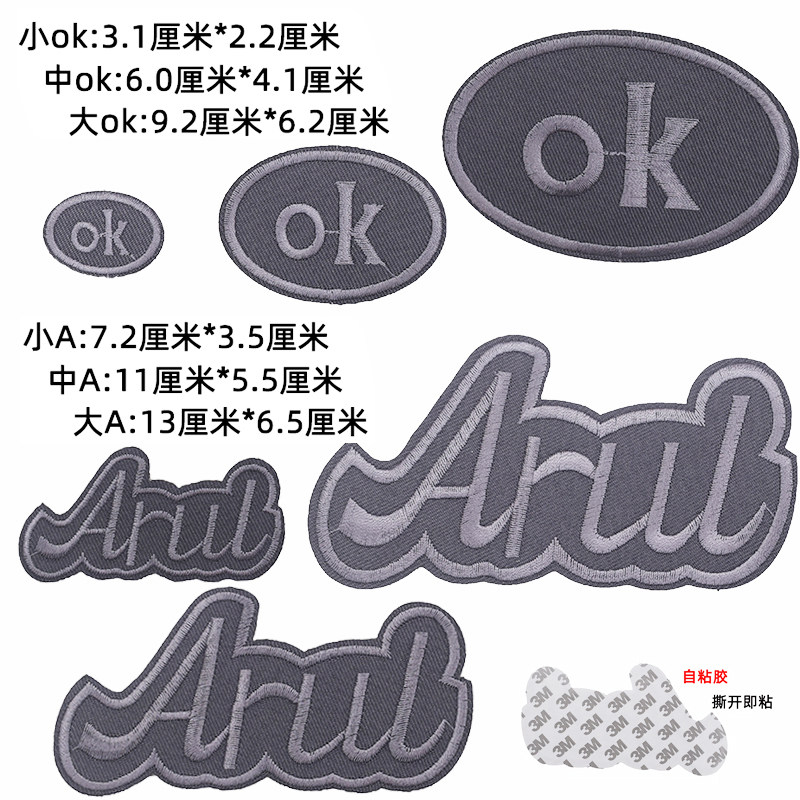 大中小字母刺绣布贴自粘深灰色补丁贴羽绒服破洞修补男士 饰 皮衣装