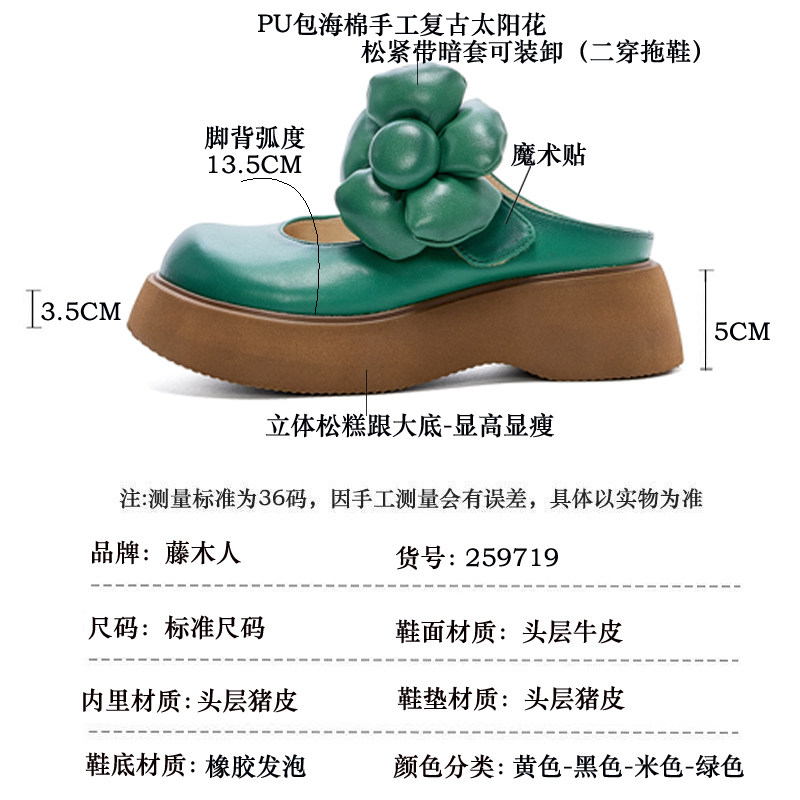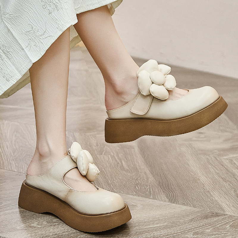 外穿真皮复古包头女士拖鞋 新中式 夏季 拖精致一字拖2026新款 子 凉鞋