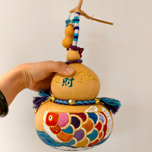 异形葫芦天然葫芦挂件文玩钱袋子葫芦摆件纯手工雕刻彩绘烫烙画鱼