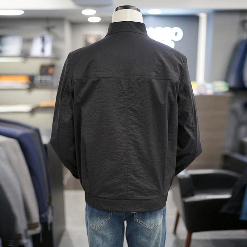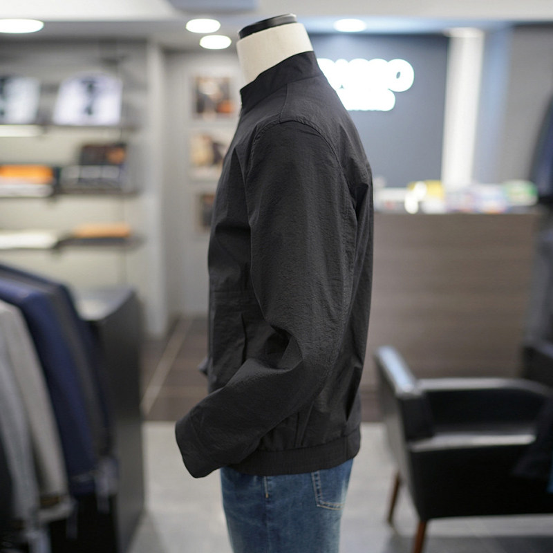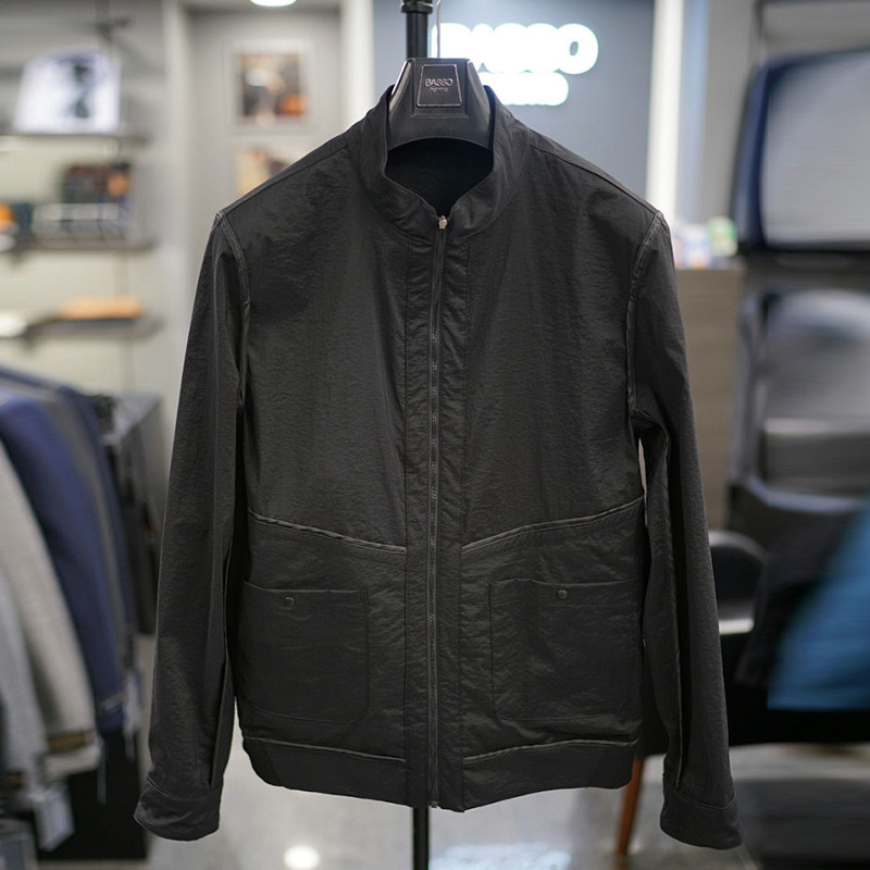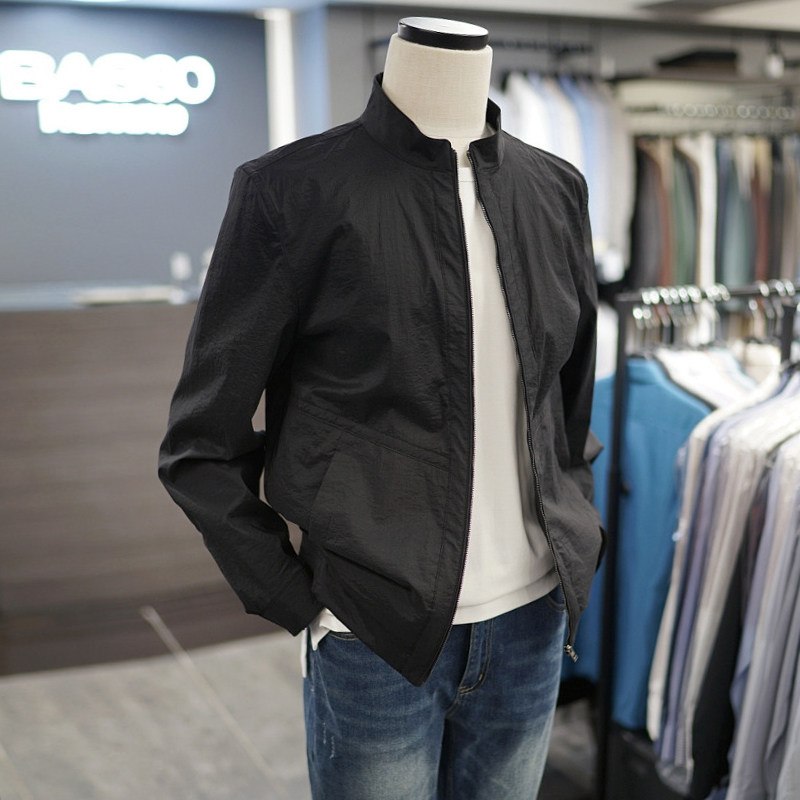 夹克外套男士 0325春款 BASSO黑色纯色立领拉链弹力休闲长袖