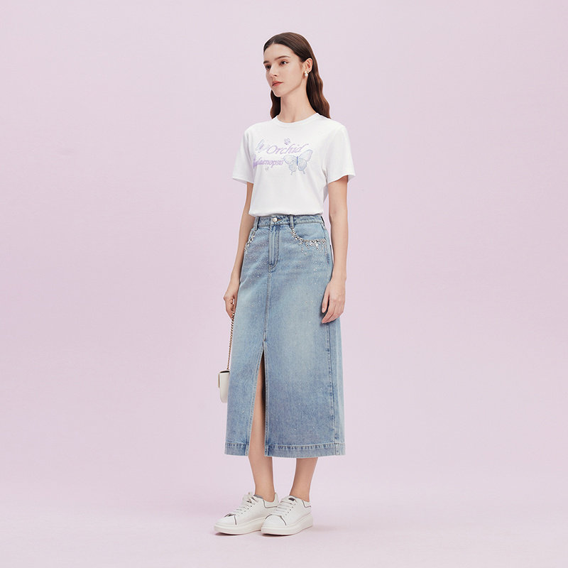 新款 2025夏季 烫钻气质牛仔半裙女 Koradior拉珂蒂商场同款