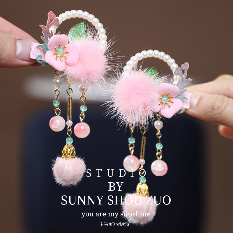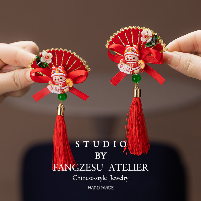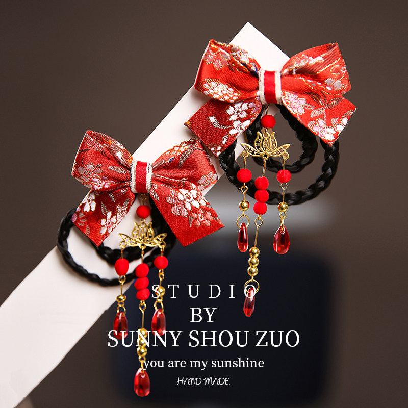 古风儿童不伤发发夹中国风女宝宝流苏发卡新年汉服春节红色头饰过