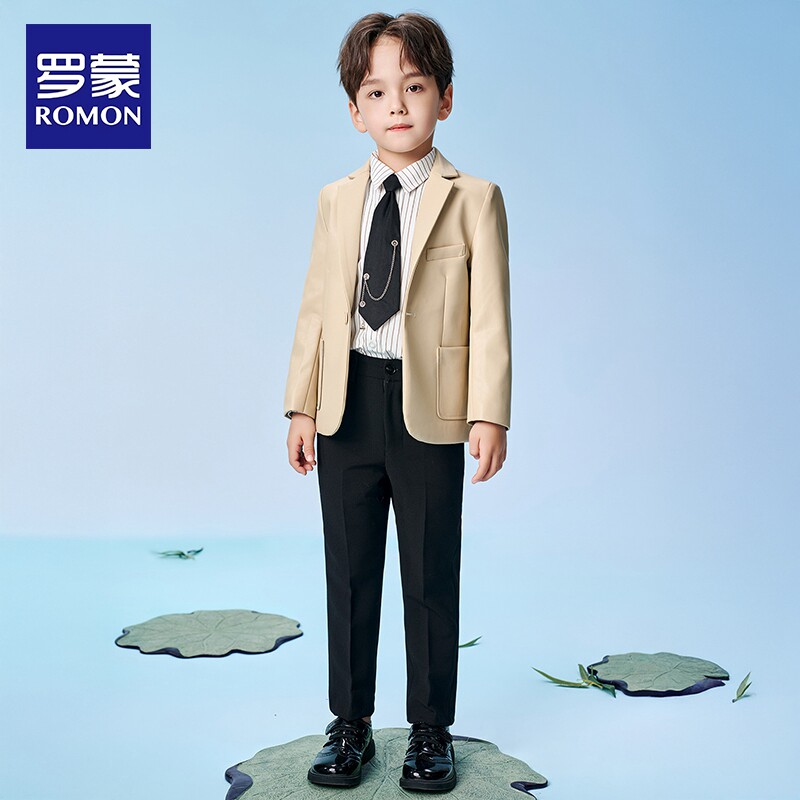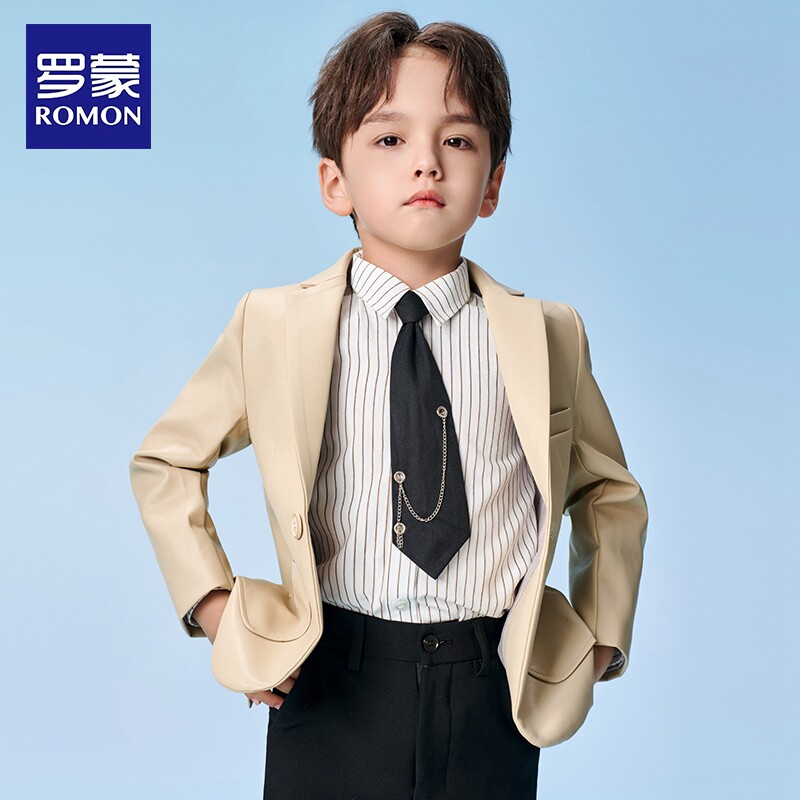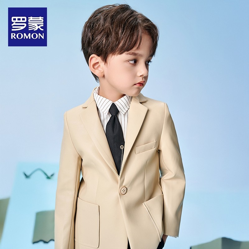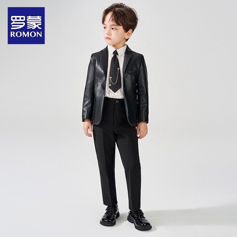 罗蒙男童休闲西装 潮酷帅 外套儿童中大童黑色皮衣时髦洋气2026新款