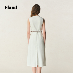 Eland衣恋连衣裙女老钱风棉麻混纺舒适马甲长裙夏季 法国亚麻