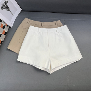 夏宽松显瘦白色热裤 女休闲阔腿裤 短裤 丁妮妮自制老钱风卡其色西装