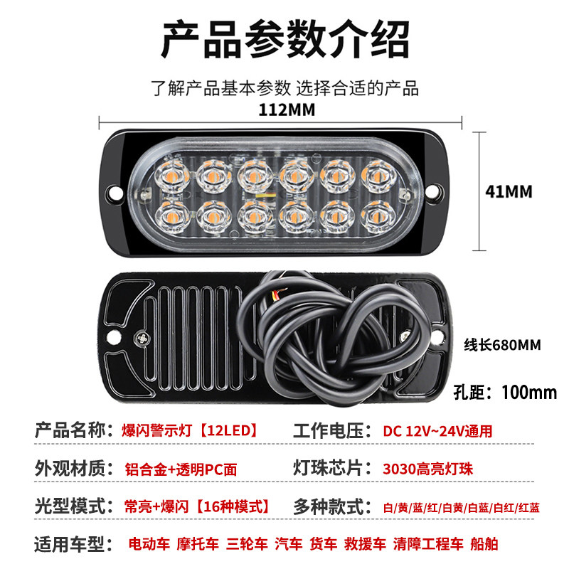 灯 24v日行灯改装 汽车led超薄警示灯货车中网灯侧边频闪爆闪灯