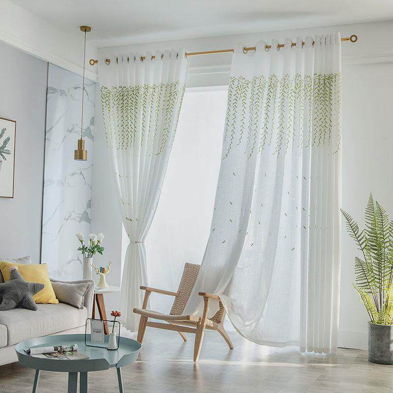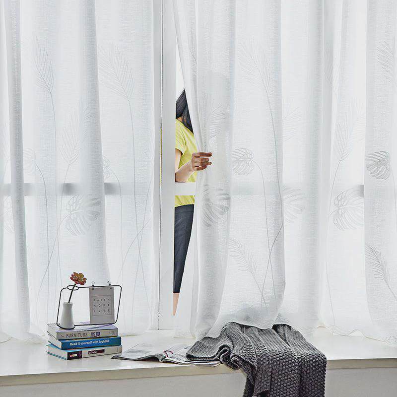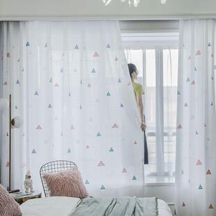 不透窗卧室窗纱免客厅隔断网纱窗帘帘阳台遮阳人飘红打孔透光