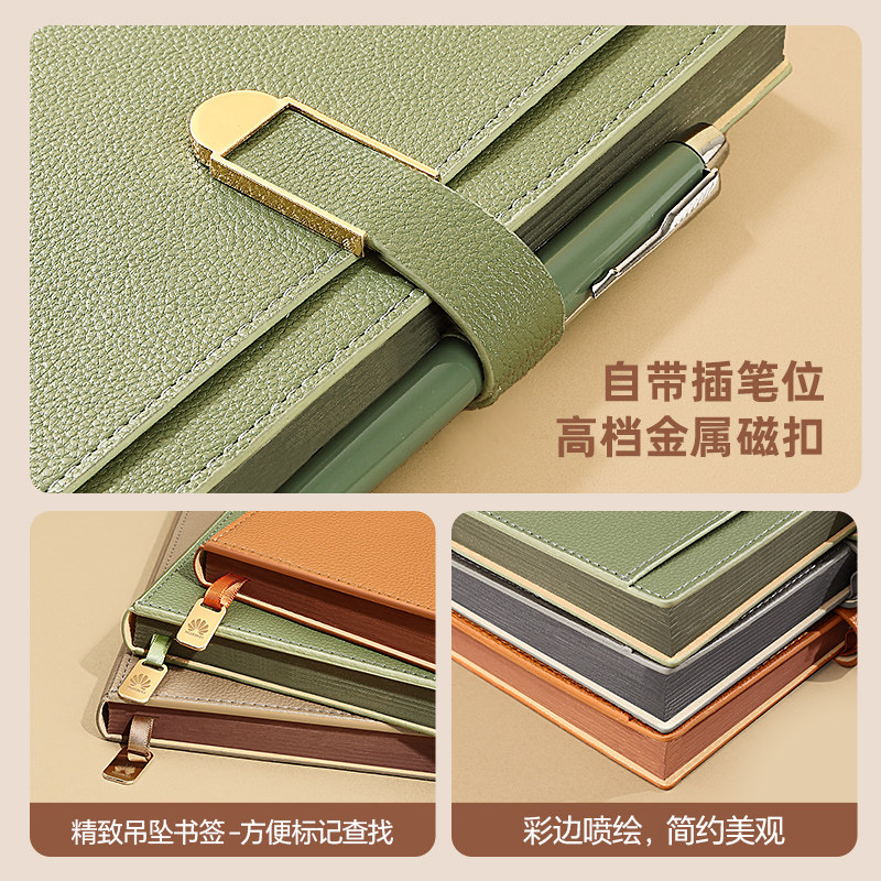 商务高档笔记本子a5工作办公会议记录本B5简约加厚记事本高颜值皮面横线学生日记本精致礼盒企业定制可印logo
