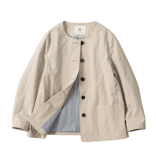 西河自制新品 外套上衣女 两色纱线色织精密匹马纯棉圆领短款