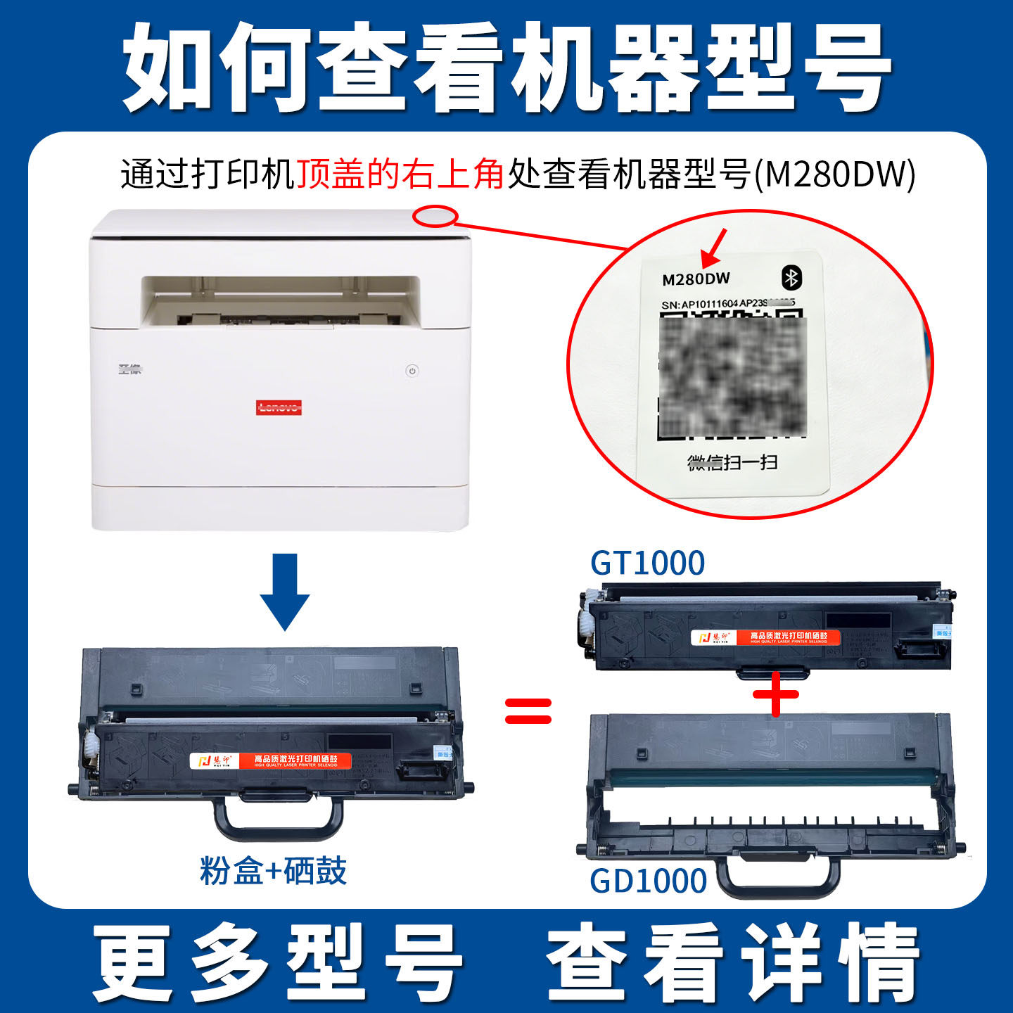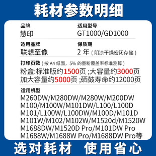 慧印适用联想至像M280DW墨粉盒m280w m260dw碳粉盒m200dw粉仓GT1000炭粉GD1000硒鼓架成像鼓感光鼓激光复印机