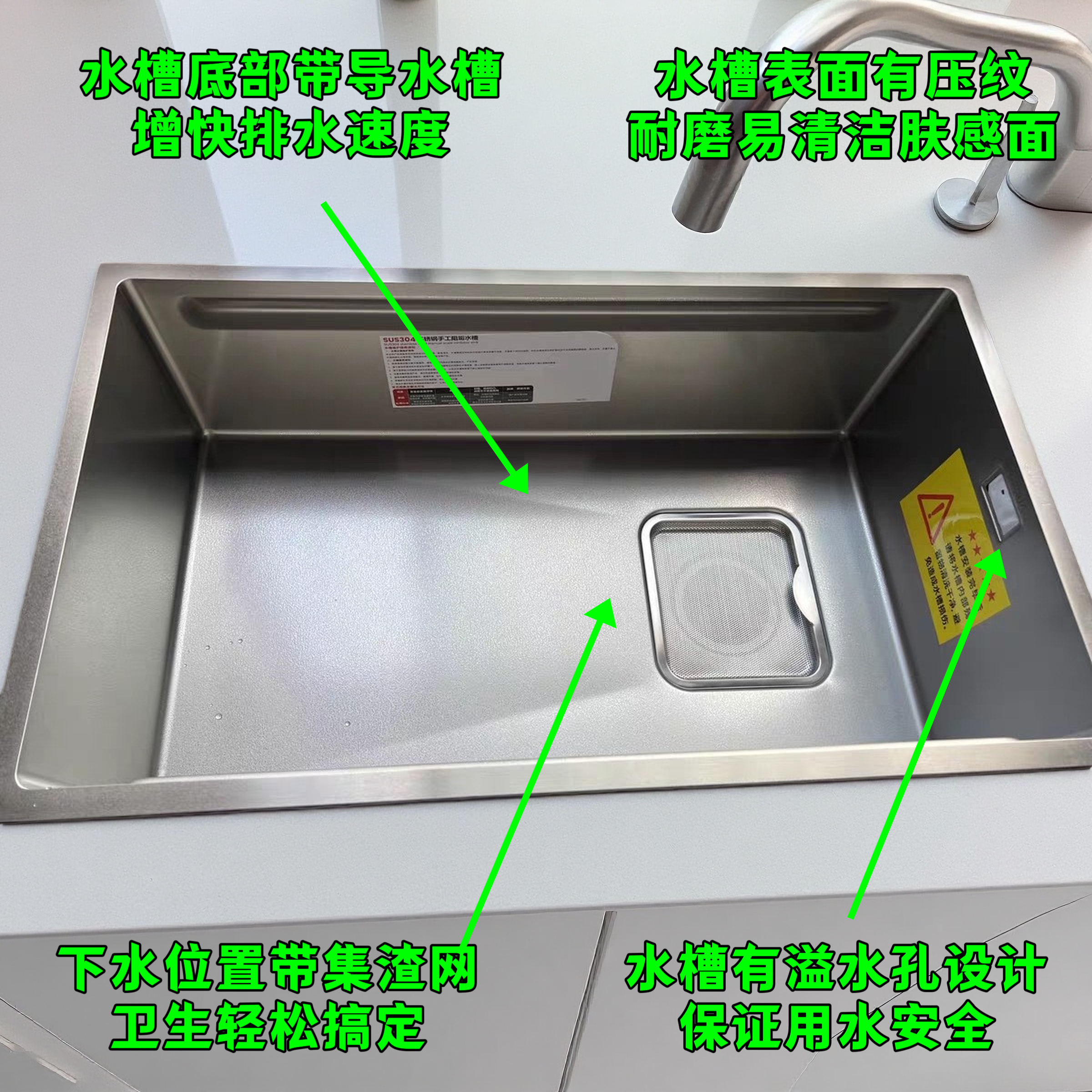 1.5 4.0 手工大单槽台控下水厨柜抗污 SUS316L锤纹壁不锈钢 新款