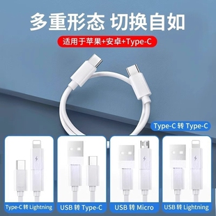 多功能数据线盒转换头万能转接头收纳盒便携充电线短线60W快充线安卓转换器SIM内存卡收纳取卡针五合一套装