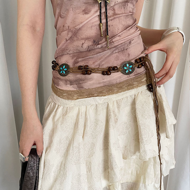 波西米亚民族风编织腰绳2025新款 饰高级感百搭皮带 细腰带配裙子装