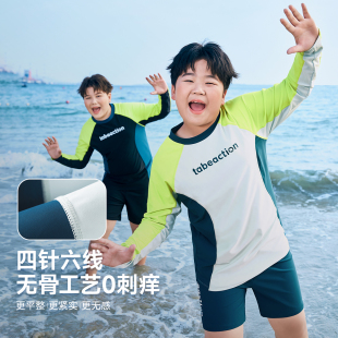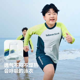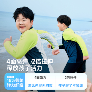 分体泳衣男青少年 胖男童泳衣中大童儿童长袖 海岛级UPF防晒
