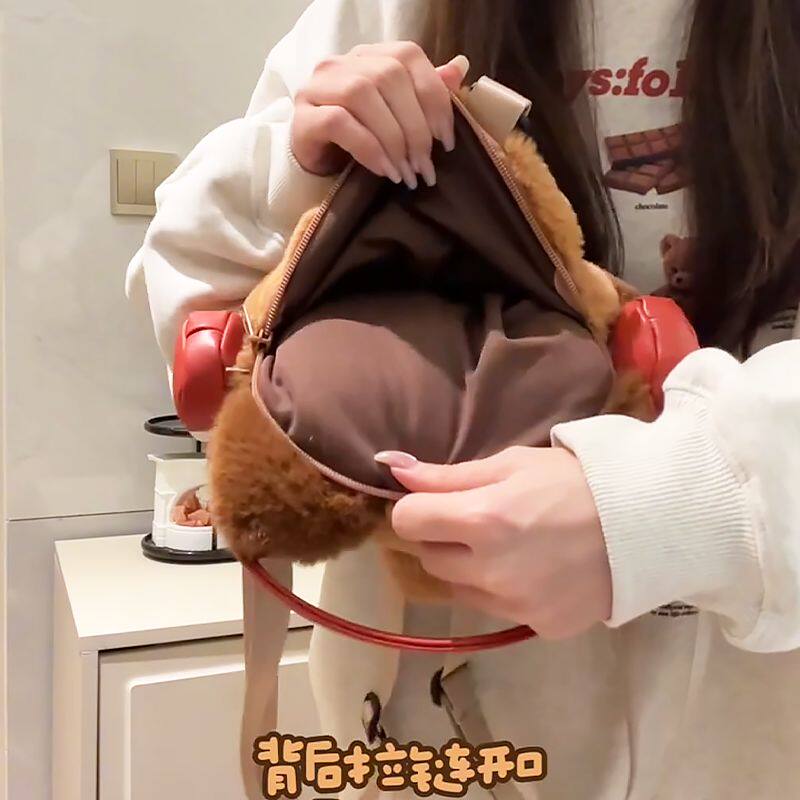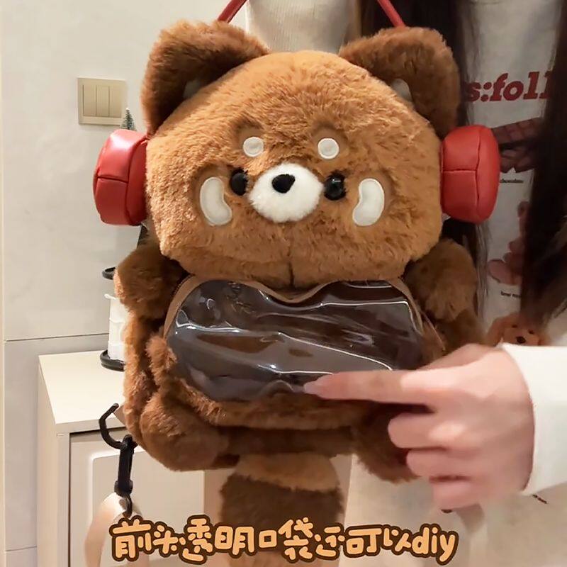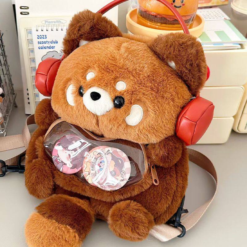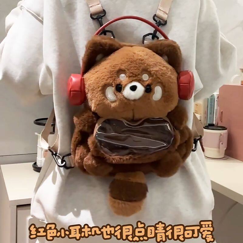 小熊猫痛包小食量双肩背包毛绒卡通玩偶可爱日常书包女生轻便新款