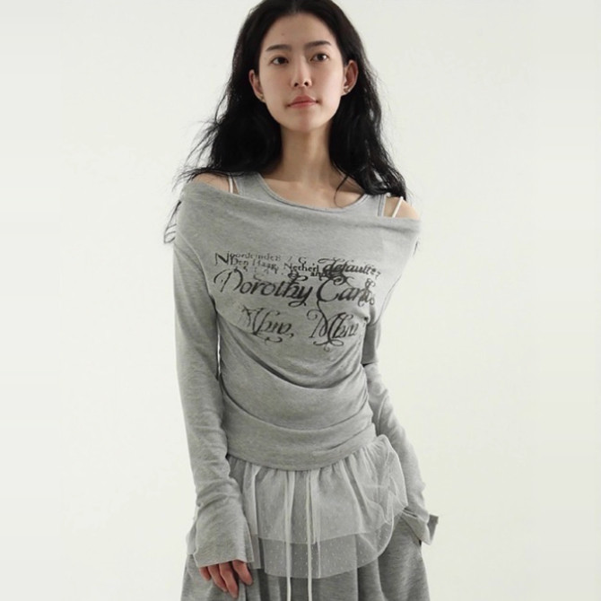 lettering layered silket 字母假两层T恤 韩国代购 tee 25A