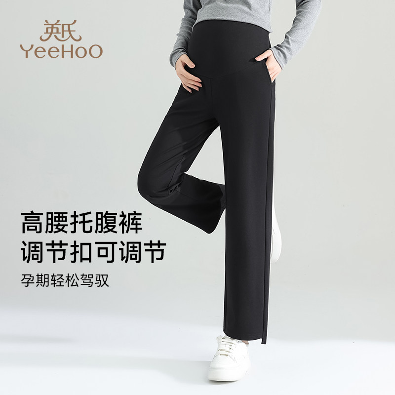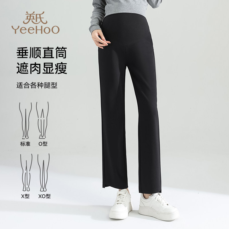 高腰烟管裤 直筒裤 2025春装 休闲裤 英氏孕妇裤 可调节孕妇裤 托腹裤