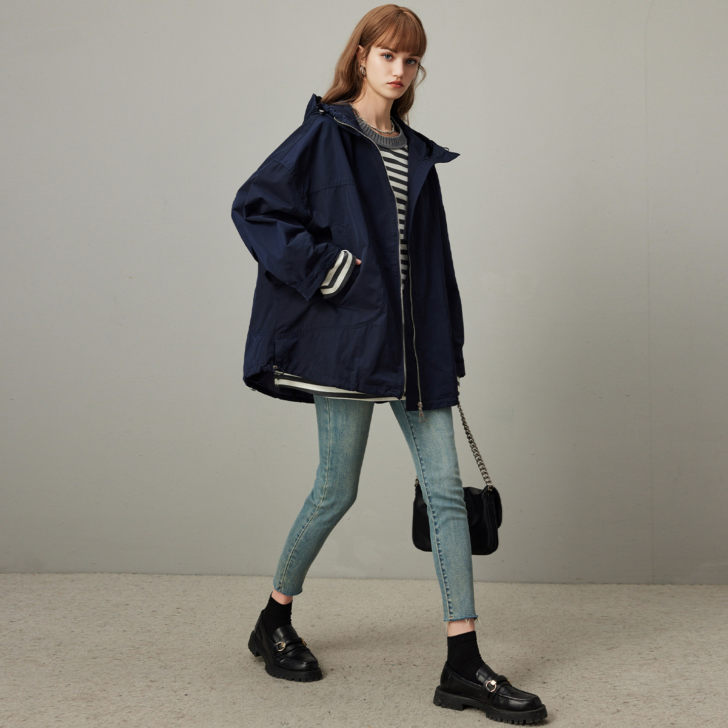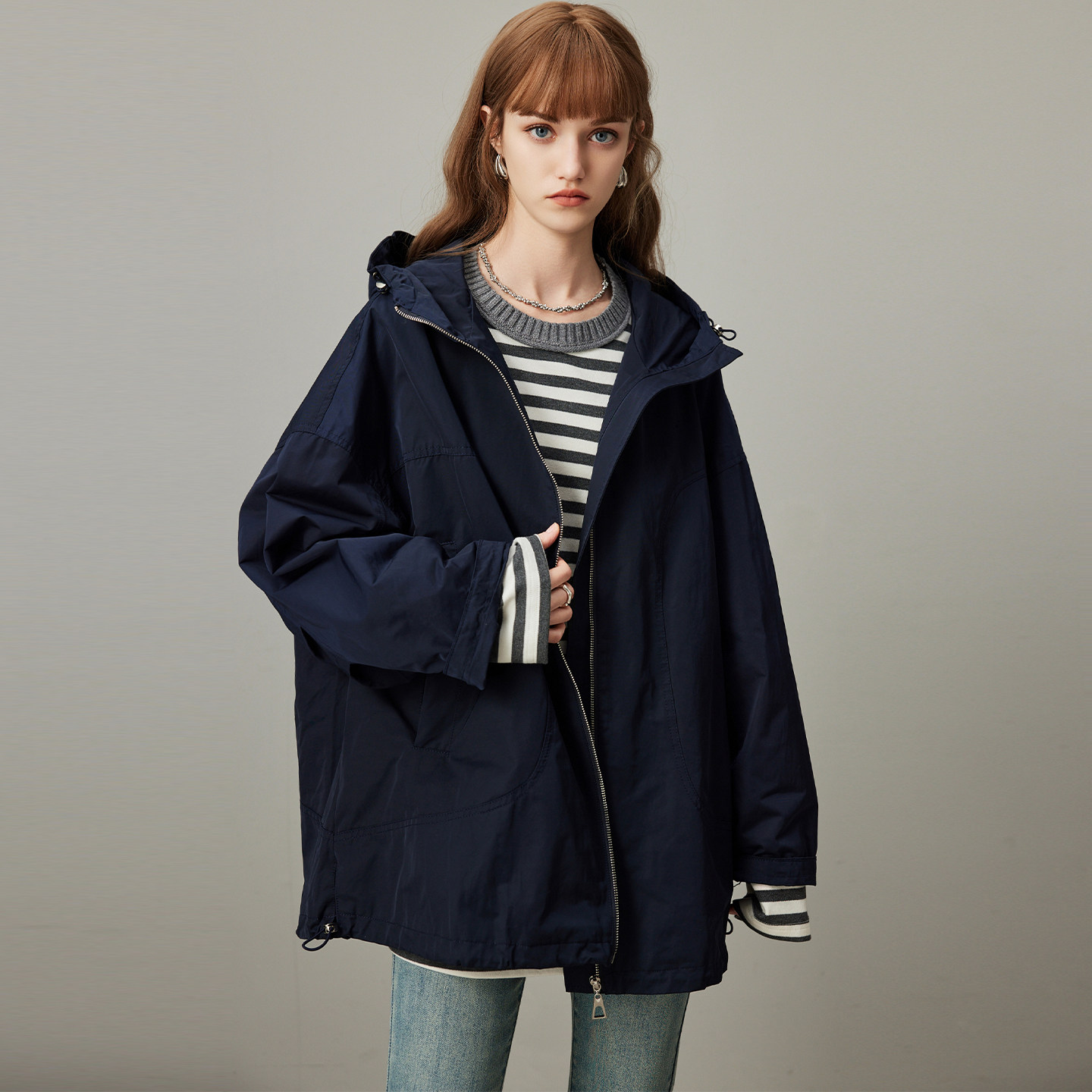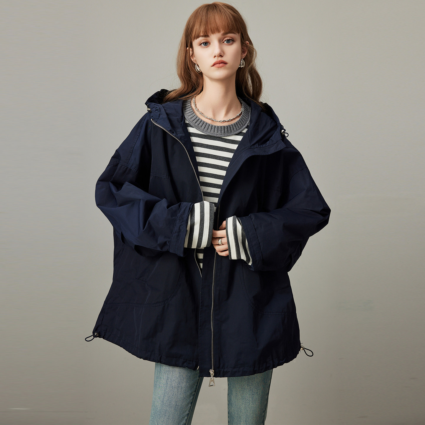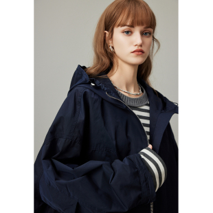 宽松连帽休闲工装 dfvc韩版 新款 风衣外套女2026年春季 上衣潮 中长款