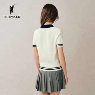 25夏季 女式 新品 撞色时尚 T恤 POLOWALK短袖 绞花百搭显瘦半袖 针织衫