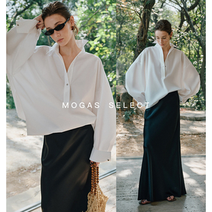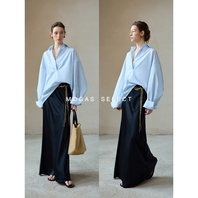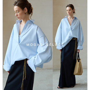 正肩内搭叠穿衬衣上衣外套 情侣装 重磅100%纯棉斜纹棉白衬衫 男女款