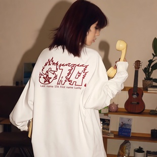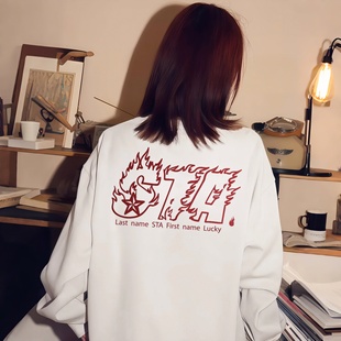 STA旗舰店美式 男女潮牌复古重磅纯棉宽松情侣卫衣 火焰字母长袖