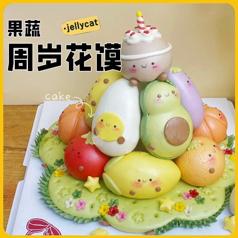 蛇宝抓周馒头1周岁花馍生日布置Jelly果蔬蛋糕马宝百天满月花饽饽