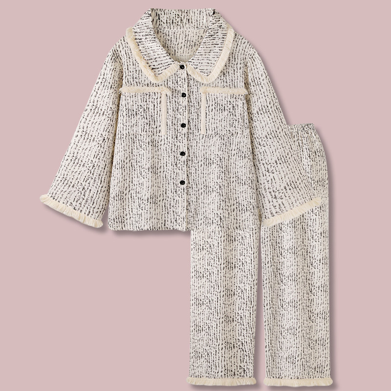 家居服 保暖加绒大码 贝妍高级感小香风睡衣女秋冬季 加厚珊瑚绒套装