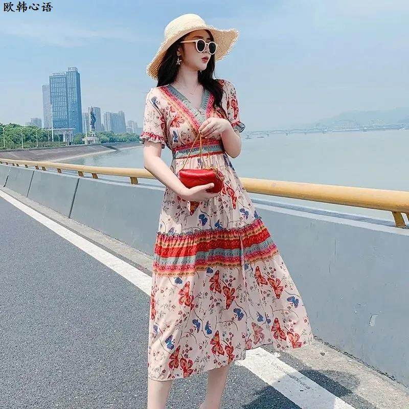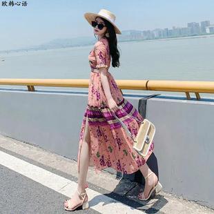 波西米亚碎花长裙连衣裙显白2025夏天新款 仙女三亚度假雪纺沙滩裙