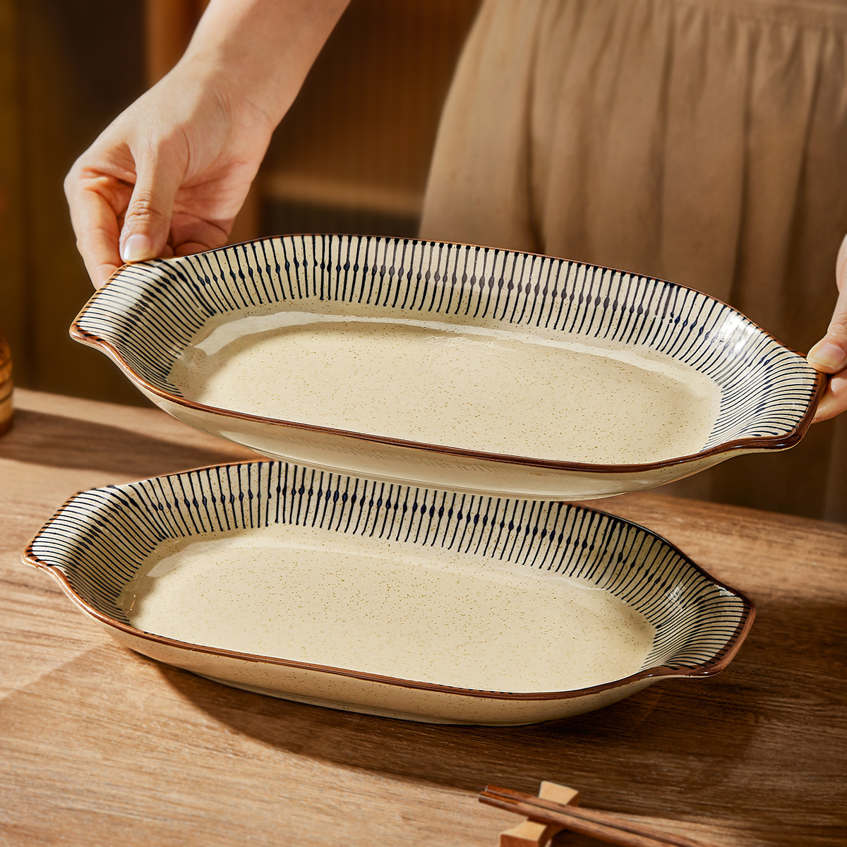 玻璃大烤盘可蒸鱼盘微波炉烤箱加热专用菜盘家用耐高温餐盘子器皿