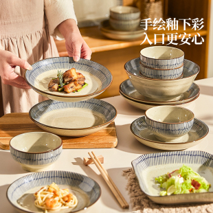 陶瓷碗盘套装 创意大号餐盘深盘餐具组合个性 盘子菜盘家用新款 日式
