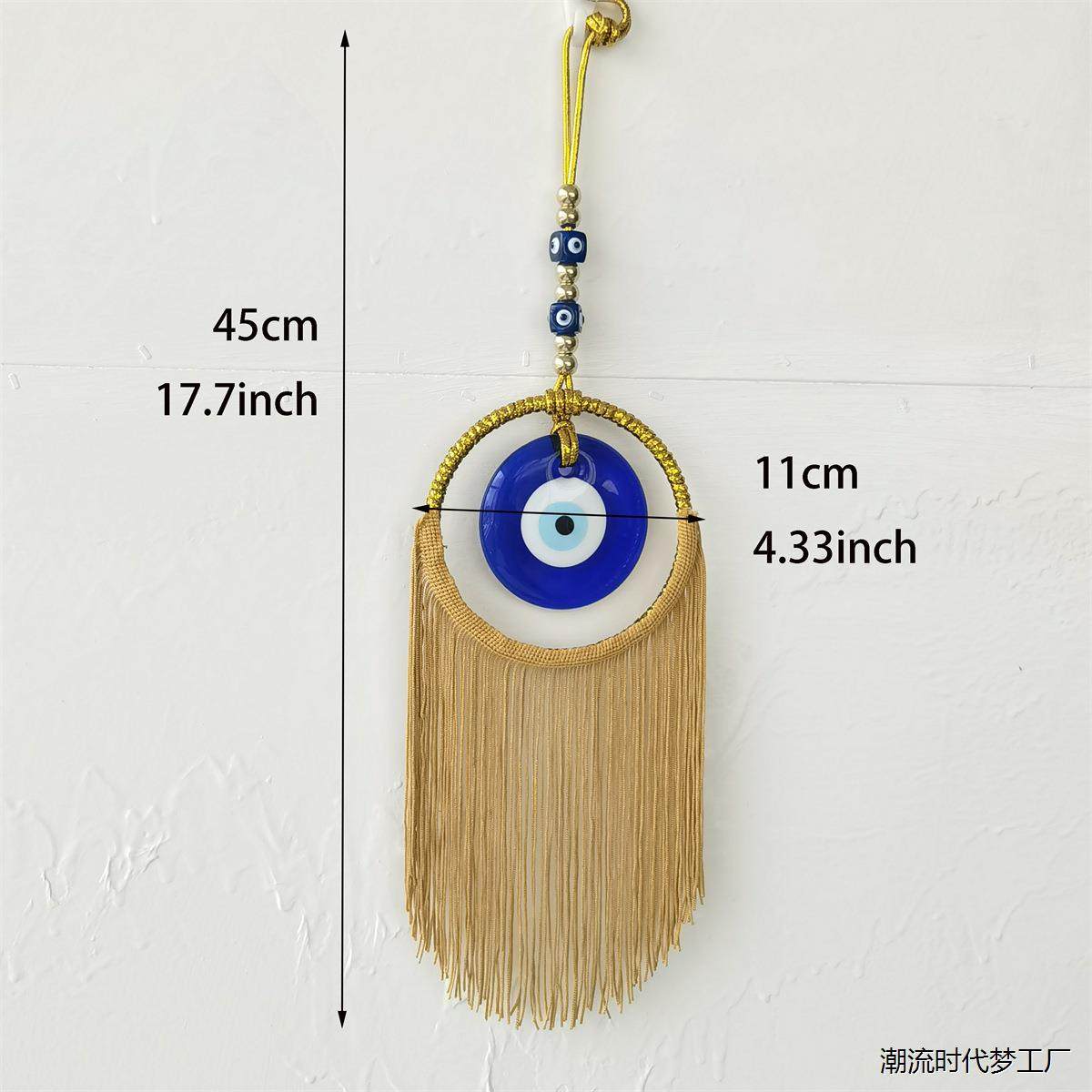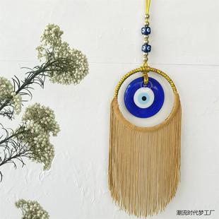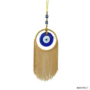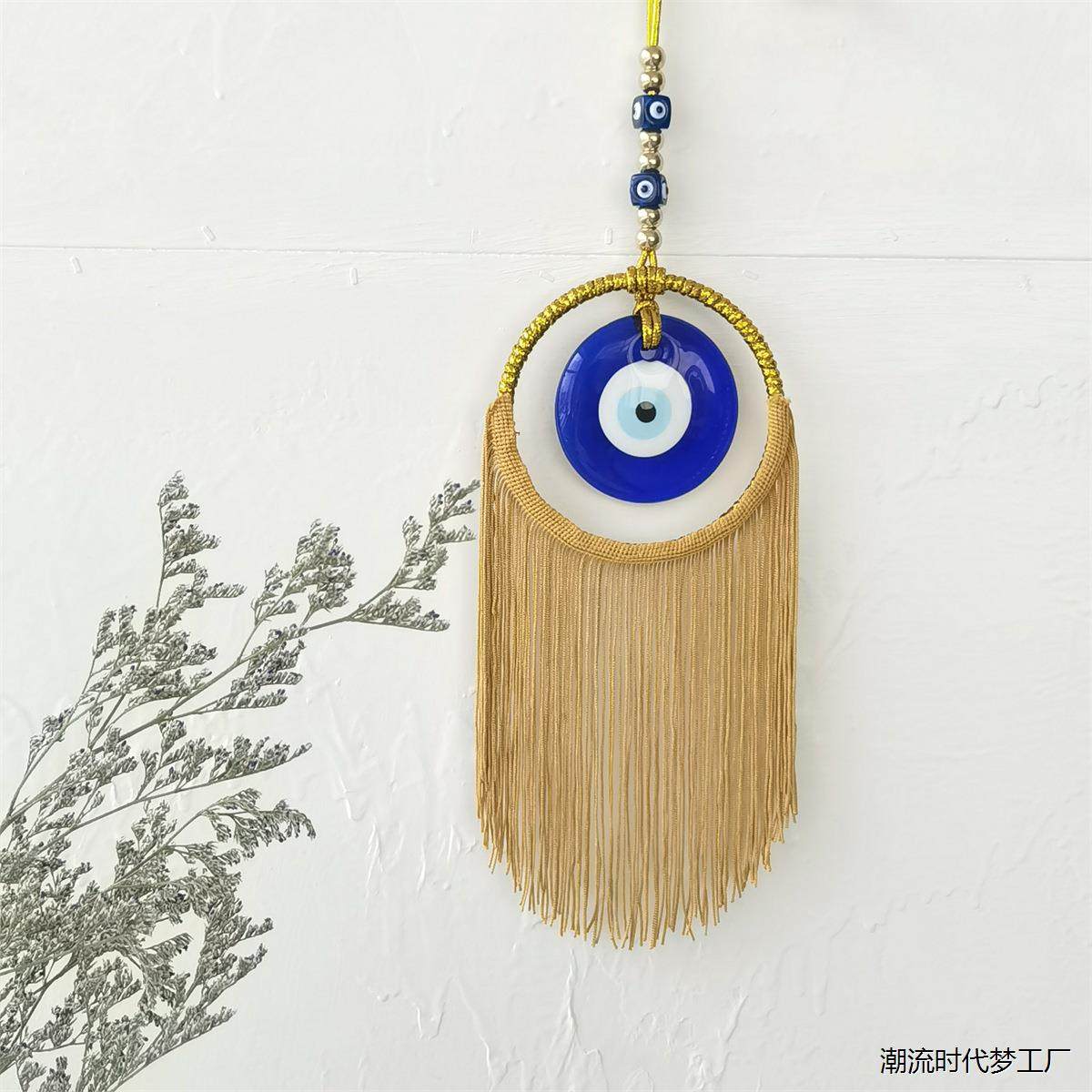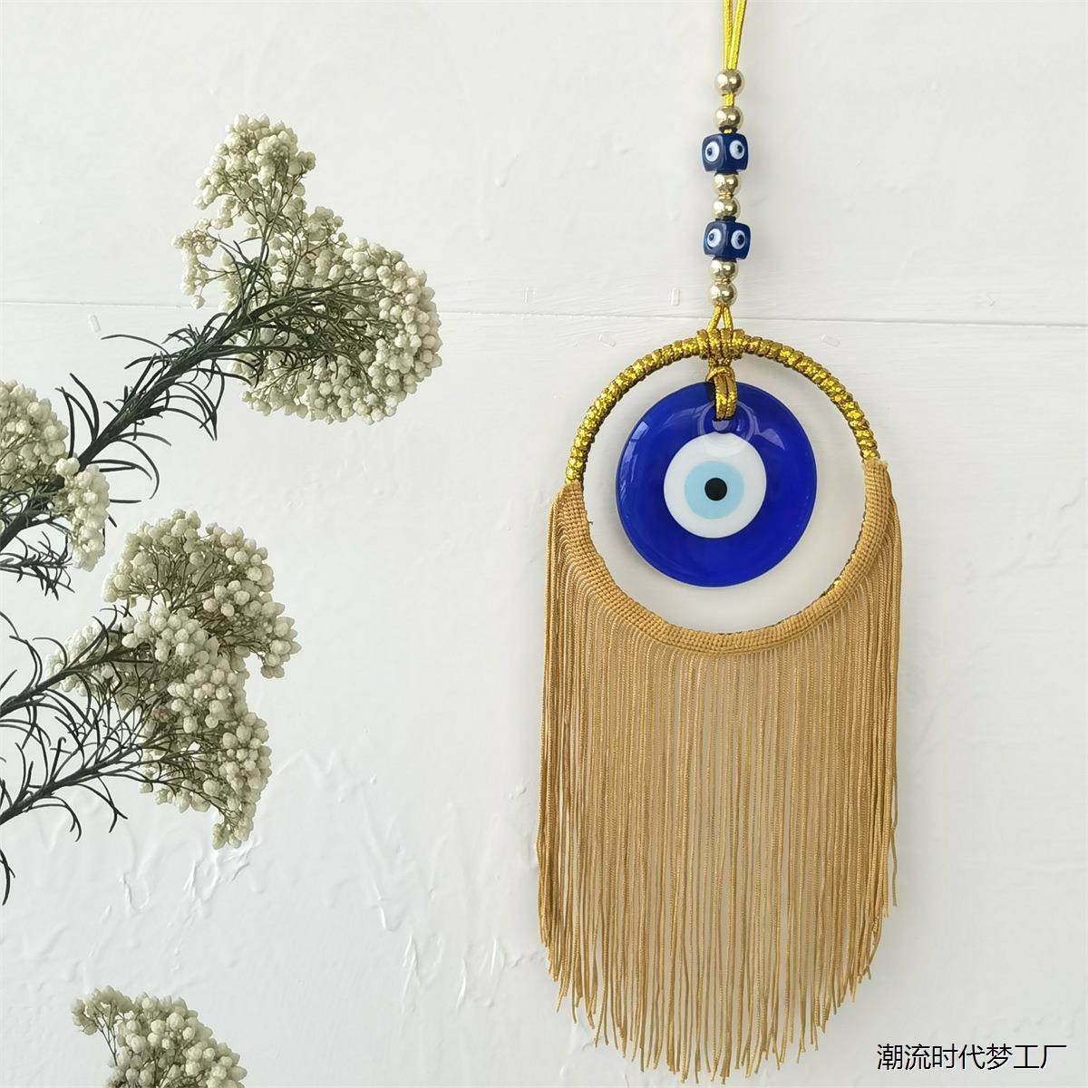 土耳其新款 蓝眼睛挂毯EvilEyes手工编织金色丝线恶魔之眼挂饰壁饰