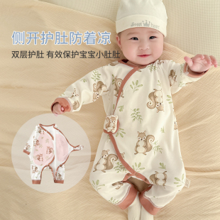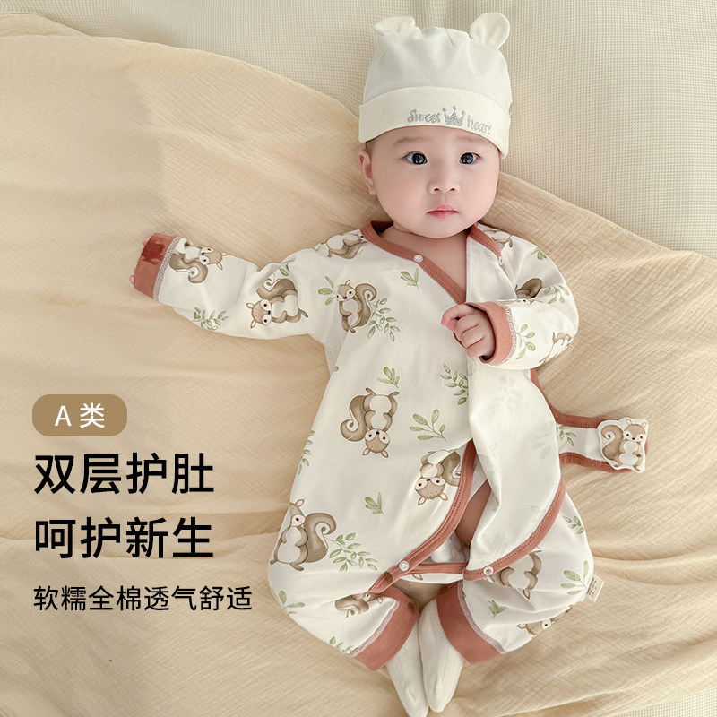 新生婴儿衣服a类纯棉护肚蝴蝶衣宝宝系带和尚服月子服连体衣春秋