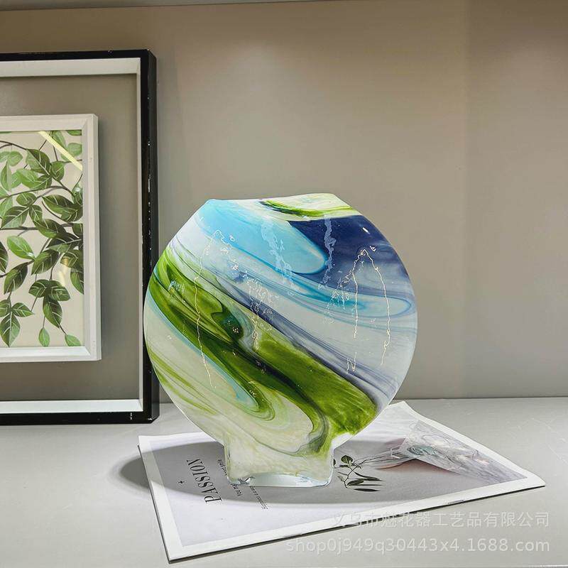 现代时尚 桌面饰品 手工彩色琉璃花瓶摆件餐桌插花水培花器家居软装
