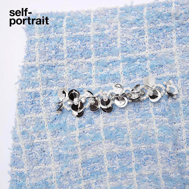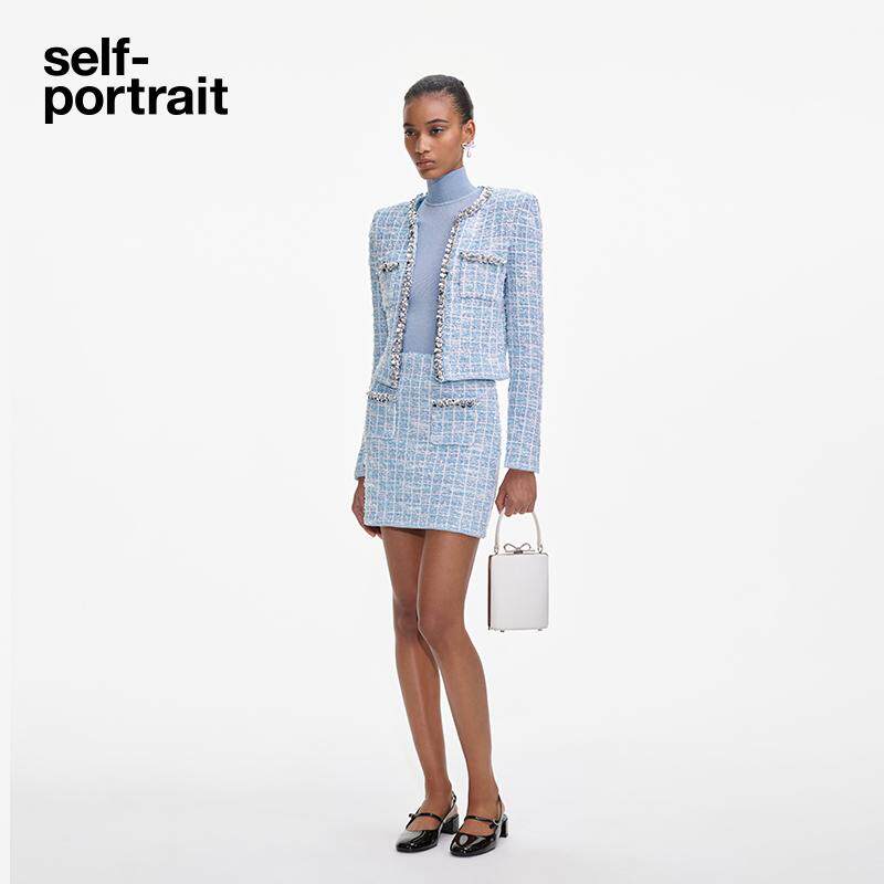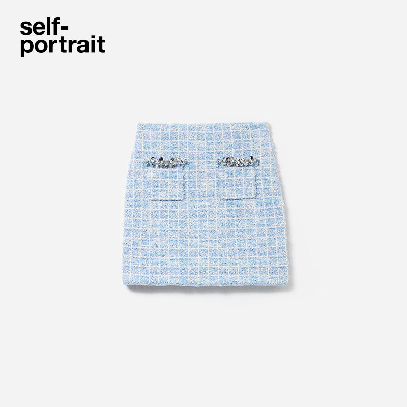 self 2025春夏蓝混色钻饰小香风针织包臀半身裙 portrait